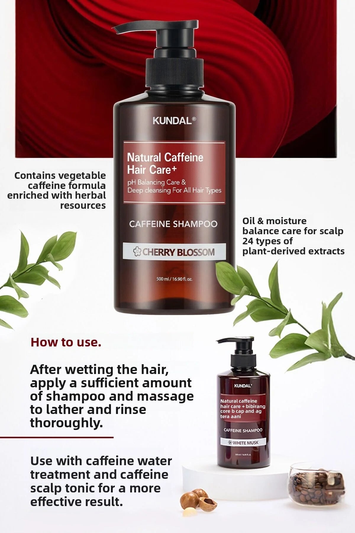 Kundal – Caffeine Scalp Shampoo Cherry Blossom 500ml είναι ένα ενισχυμένο σαμπουάν ειδικά σχεδιασμένο για όσους αντιμετωπίζουν τριχόπτωση ή αδύναμη ρίζα στο τριχωτό. Η υψηλής καθαρότητας Caffeine διεγείρει την κυκλοφορία του αίματος στη ρίζα, ενισχύει τη θρέψη των τριχοθυλακίων και βοηθά στη μείωση της τριχόπτωσης, κάνοντας τα μαλλιά να δείχνουν πιο δυνατά και πιο υγιή με κάθε χρήση.